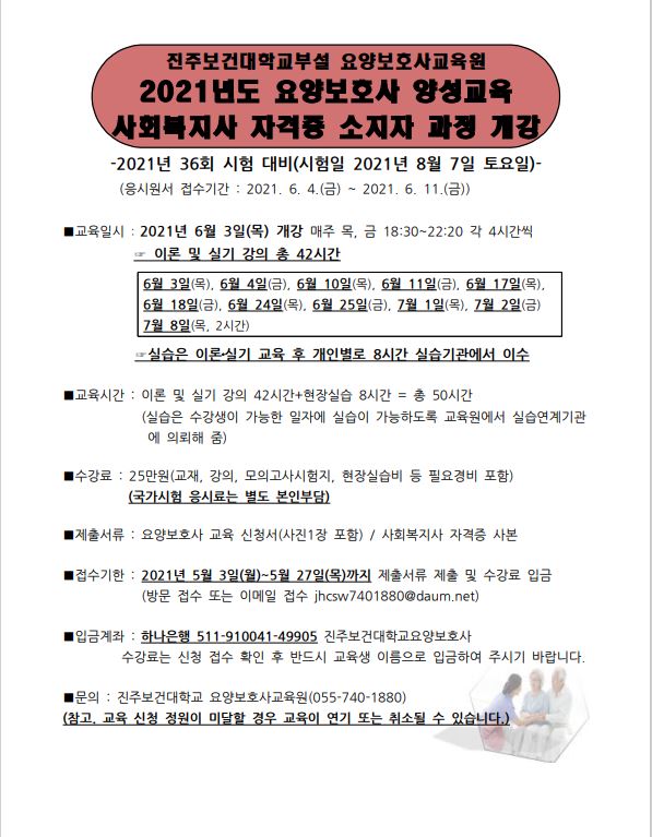 2021학년도 요양보호사양성교육 개설안내 (6월3일(목))개강