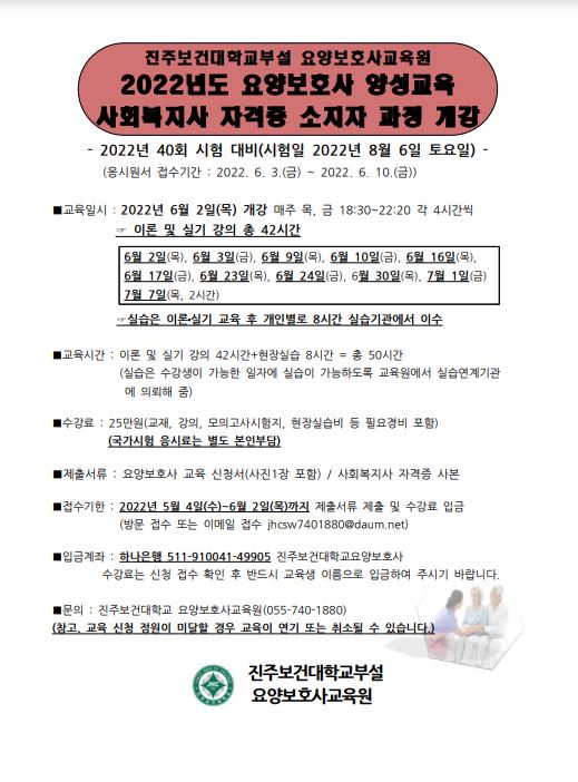 2022학년도 요양보호사양성교육 개설 안내