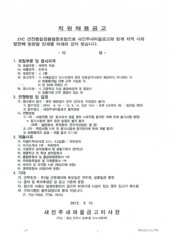 새진주새마을금고 채용공고