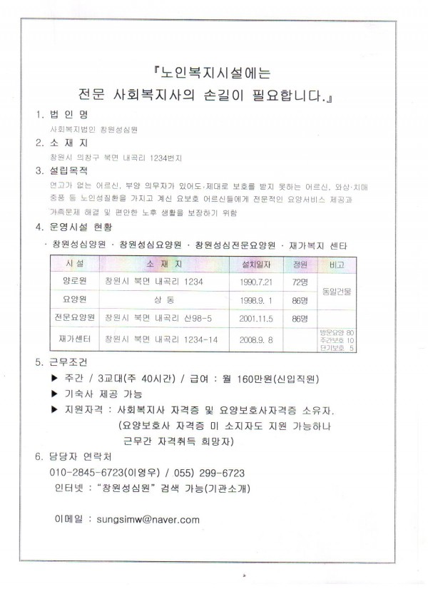 성심원 채용공고