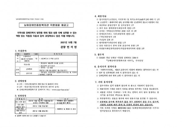 기타 문의 055-862-0012(남해장애인종합복지관 사무국)