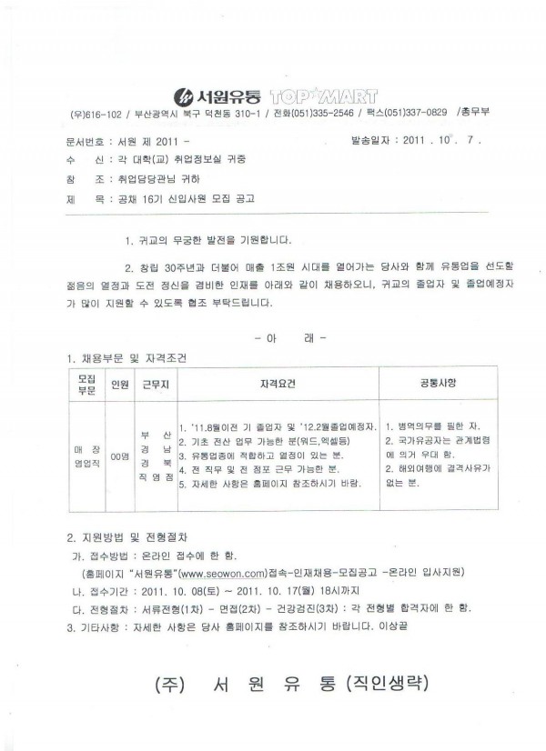 채용공고(서원유통)
